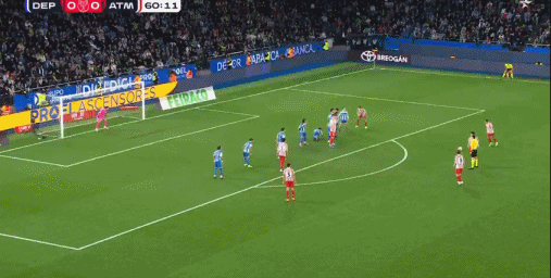 第61分钟,马竞又一次获得禁区前沿右侧的任意球机会,这次格列兹曼主罚,皮球飞向球门右上死角!马竞1-0领先拉科鲁尼亚